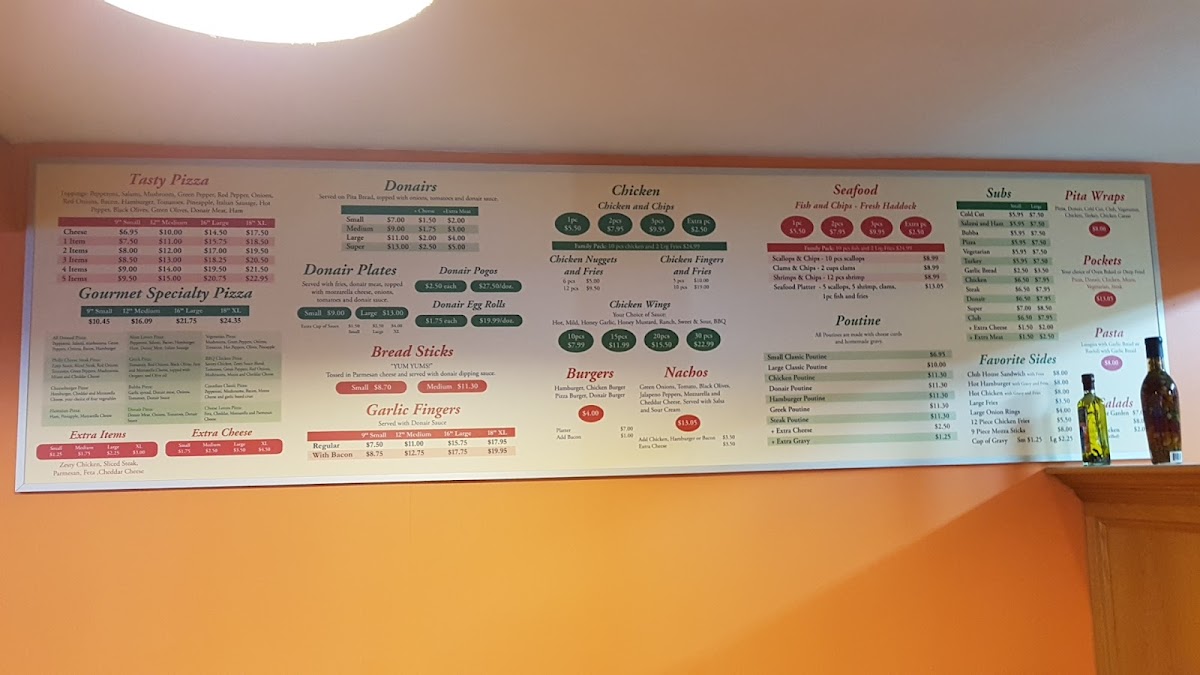 The menu features classic choices like the hearty barbecue chicken pizza, beloved for its generous toppings and exquisite sauce. Complimenting the pizza are their donair plates, offering both large and small sizes that cater to all appetites. For a taste of comfort, try the chicken nuggets and fries, a favorite among families.